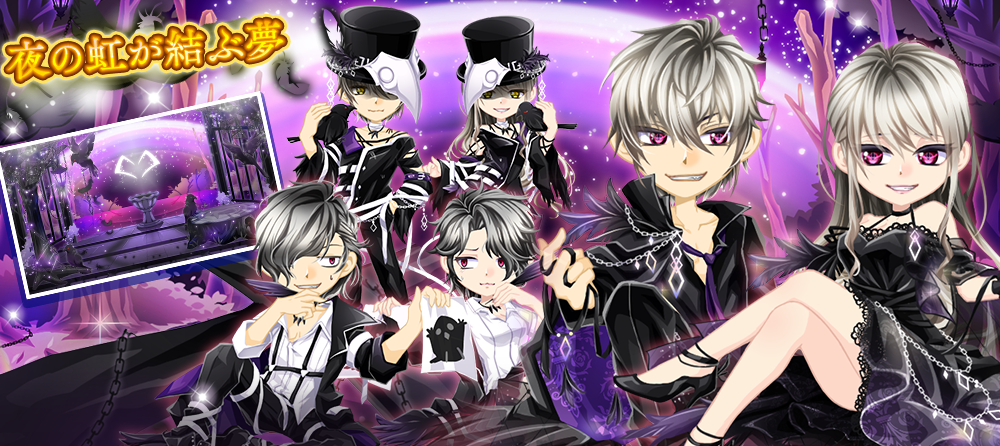 夜の虹が結ぶ夢インテリア 初回リリース日:2021/06/01 SSR 空と繋ぐ波紋 8 マス フレーム SSR 虹かかる夢の夜 8 マス 壁紙 SR 止まり木ランプ 2 マス 床置き SR カラスの水飲み場 8マス 床 R 立てかけフリルL 2 マス 天井 R 立てかけフリルR 2 マス 天井 R 見下ろしカラス 1 マス 壁掛け R カラスがいっぱい 3 マス 床置き